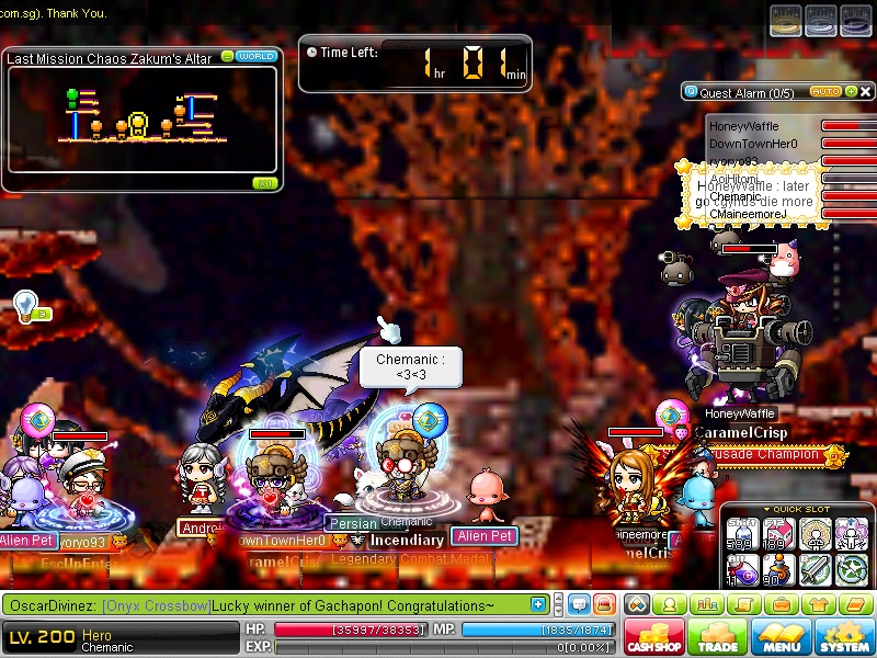 And achilles. I miss achilles so much... what's the use of 35k hp when one 1,1 is enough to reduce ur hp to nothing? haiz. sadded. That plus the crash revamp means that my hero will forever be not wanted in bossing - since i have such low, pathetic damage. (Then again, if not for michy and caramelcrisp, it wont be easy for my noob pala to join any boss runs either. <3 caramelcrisp)